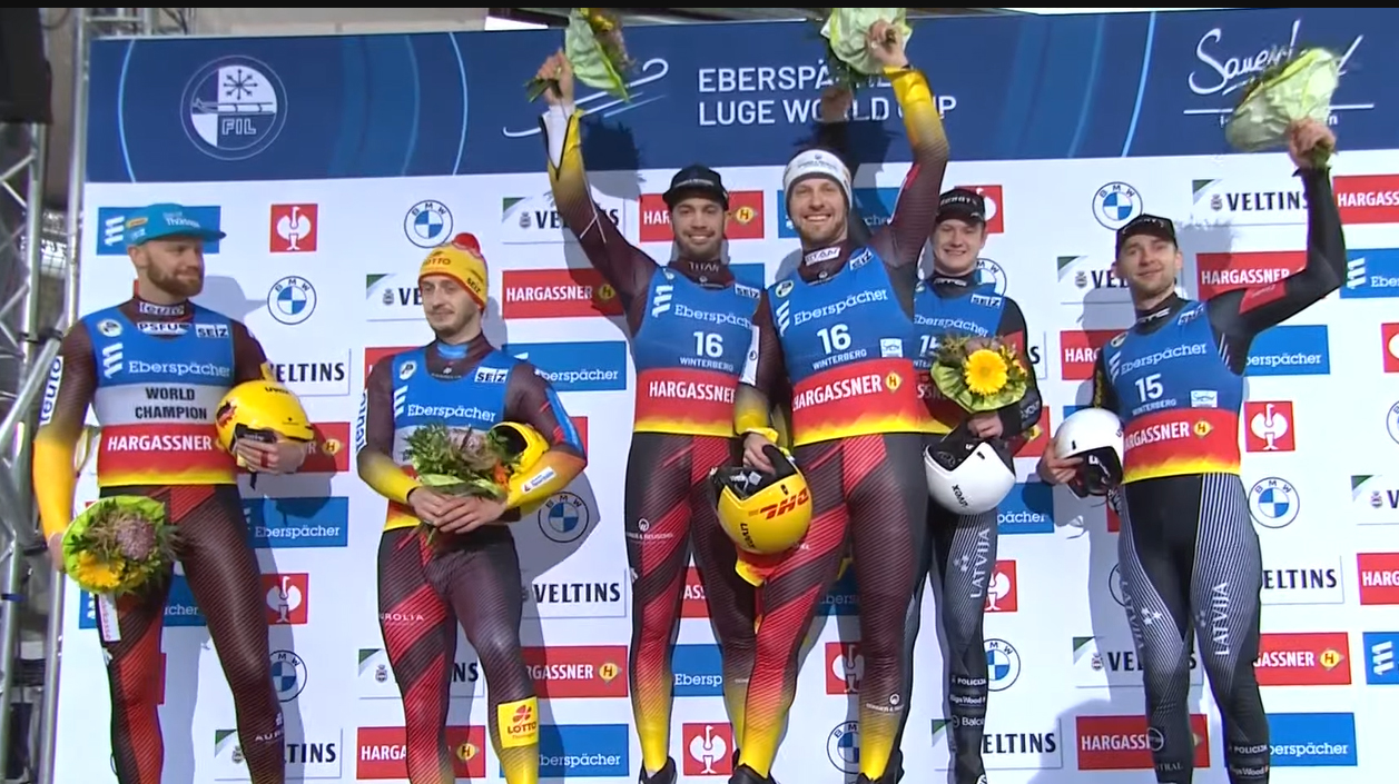 (February 11, 2023) – Tobias Wendl and Tobias Arlt set the two fastest men’s doubles times of the day in Winterberg on their way to a .43 second victory over teammates Toni Eggert and Sascha Benecken.