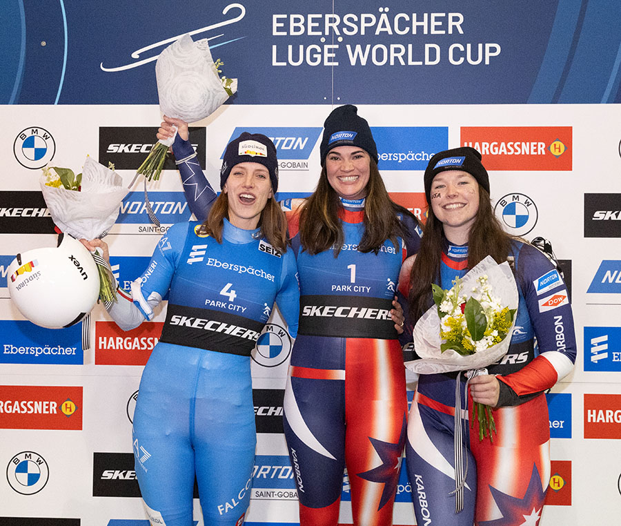 (December 13, 2025) – The racing in Park City had been somewhat unpredictable throughout the weekend, but in the women’s luge race USA’s Summer Britcher defended home turf going wire to wire over the two day event to take gold.