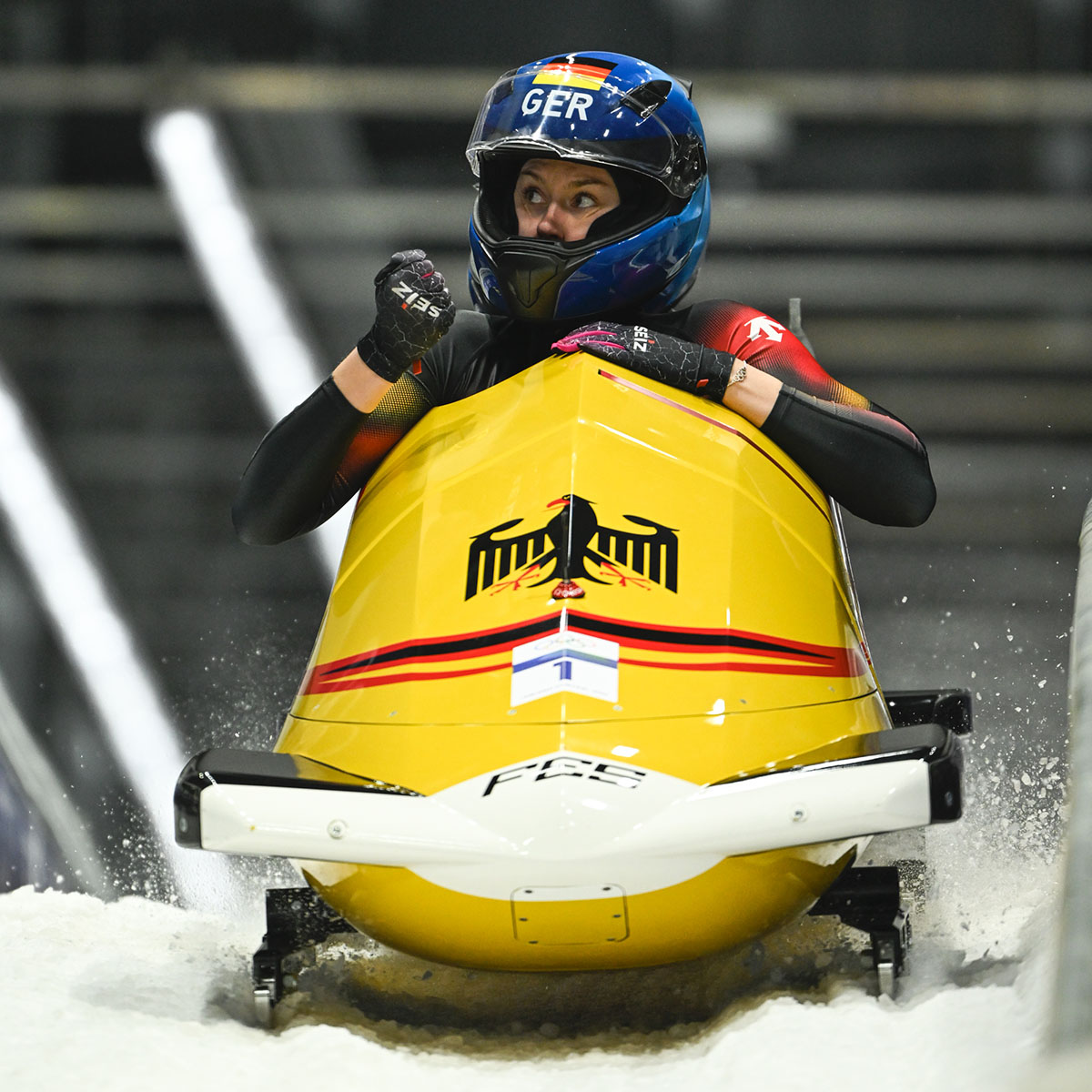 But Kaillie Armbruster Humphries and Jasmine Jones had a record of their own in their sights. The duo were .08 slower than Nolte and Levi with their start, but Armbruster Humphries had the cleaner drive on her way to a record 56.92 to give the American a five hundredths of a second lead over the German.