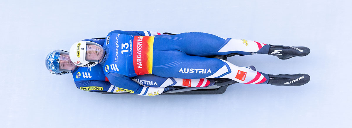 In warm temperatures but quick ice, Steu and Kindl slid to a track record 41.149 in the first heat to open up a .15 second advantage over Germany’s Toni Eggert and Florian Müller, with Austria’s Juri Gatt and Riccardo Schöpf in third, just six thousandths of a second behind Eggert and Müller.