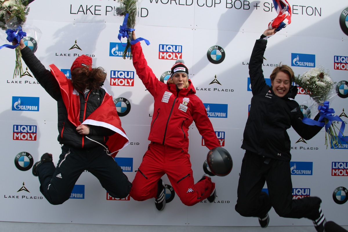 Canadian Elisabeth Vathje was consistent both in her starts and her trips down Mt. Van Hoevenberg, and was rewarded with a silver medal. Defending Olympic champion Lizzy Yarnold finished third after coming into the second run in fifth place.