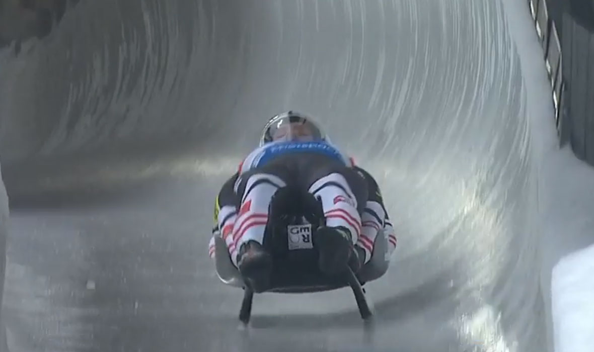 The American duo of Chris Mazdzer and Jayson Terdiman finished with another top ten in ninth place. Mazdzer, still recovering from a neck injury, is only competing in the doubles portion of the weekend’s racing and skipping the men’s singles races.