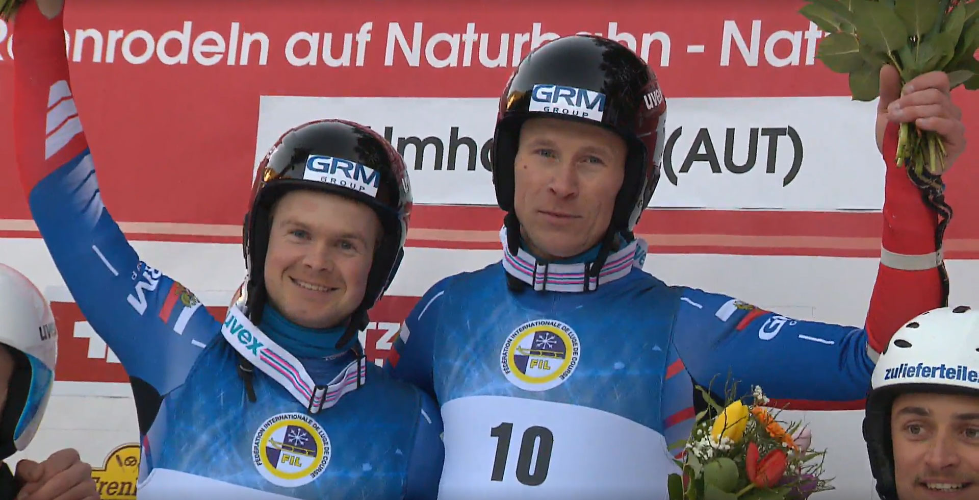 (Feb. 16, 2019) – Pavel Porshnev & ivan Lazarev won their first race of the 2018/2019, taking gold in the season finale in Umhausen. The Russian pair were the quickest in both heats on their way to a half-second win over Patrick Pigneter & Florian Clara.