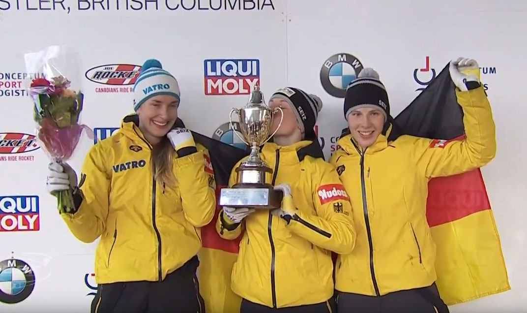 (Mar. 8, 2019) – Coming into the third heat of women’s skeleton it was shaping up to be the best performance for Germany of the 2019 World Championships. Tina Hermann had a sizeable lead on teammates Jacqueline Lölling and Sophia Grielbel. By the end of the race, the event was solidly German.