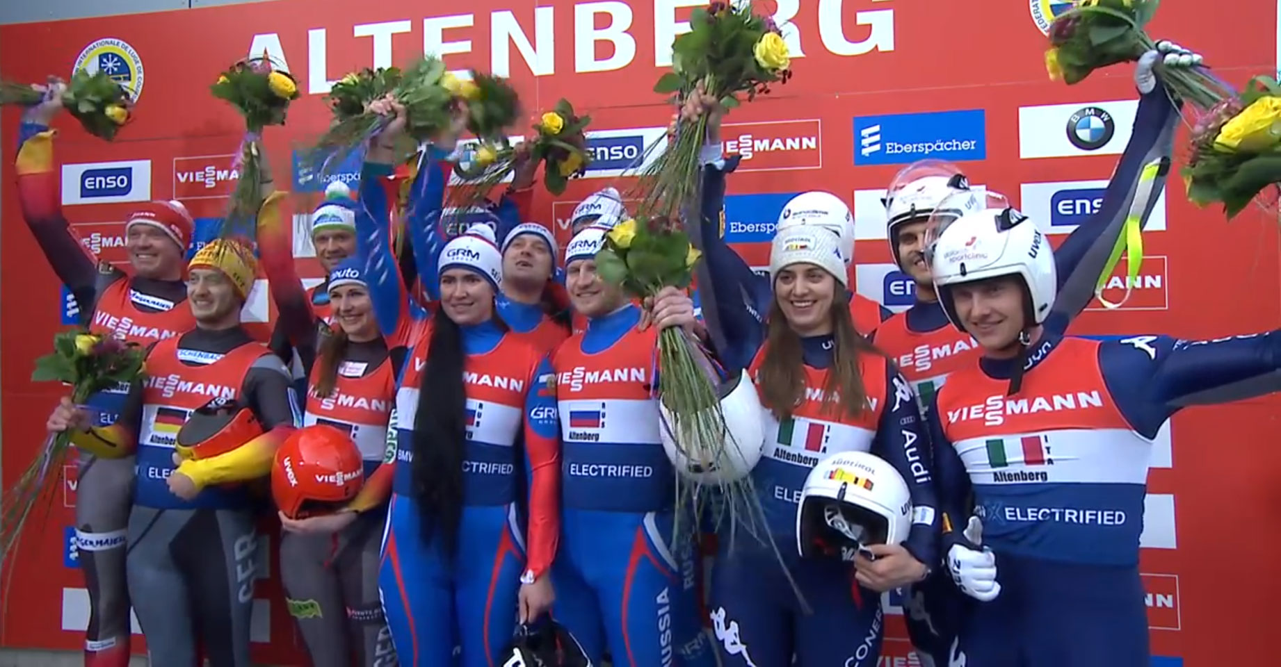 Jan. 12, 2020 – Despite not winning an individual gold medal over the course of the Altenberg weekend, Russia was strong all weekend, putting seven sleds in the top 6 across the three disciplines. In the team relay, Tatyana Ivanova, Semen Pavlichenko, and the duo of Denisv & Antonov combined to get Russia one gold for their efforts over the weekend, edging Germany in the process.