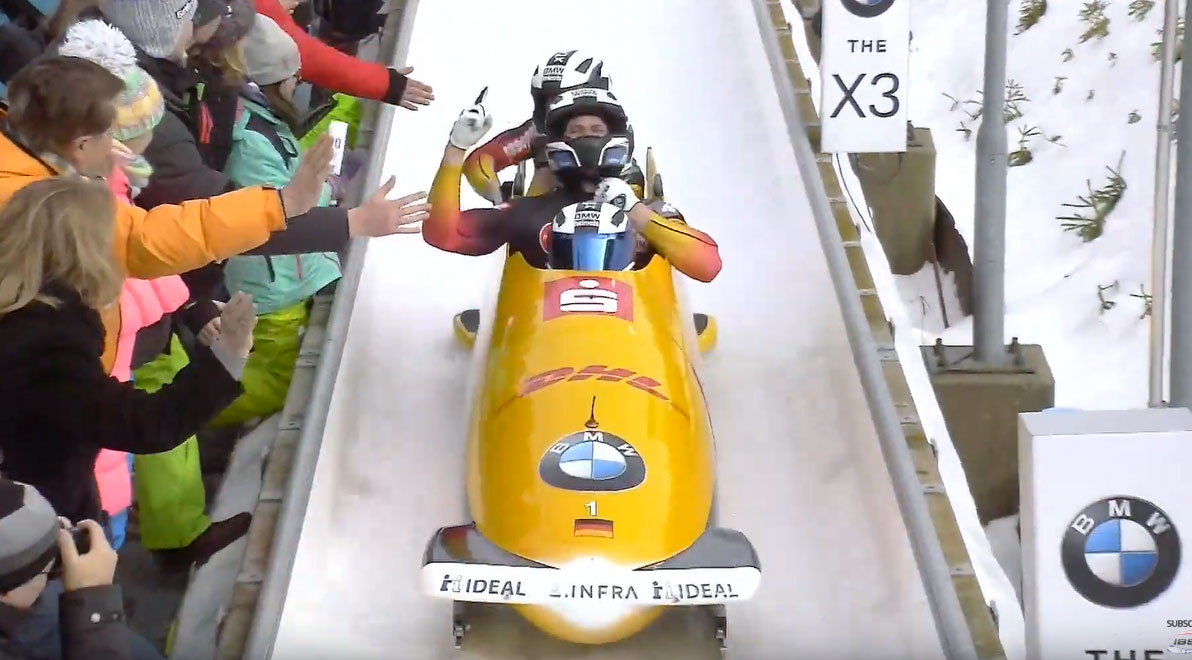 Mar. 1, 2020 – On a weekend where it seemed like every race was going to be close, it was no surprise that the 4-man bobsled finale was going to go down to the wire. After two runs Nico Walther held a .05 second advantage over Oskars Kibermanis, while Johannes Lochner and Francesco Friedrich both sat less than a tenth of a second out of the lead.