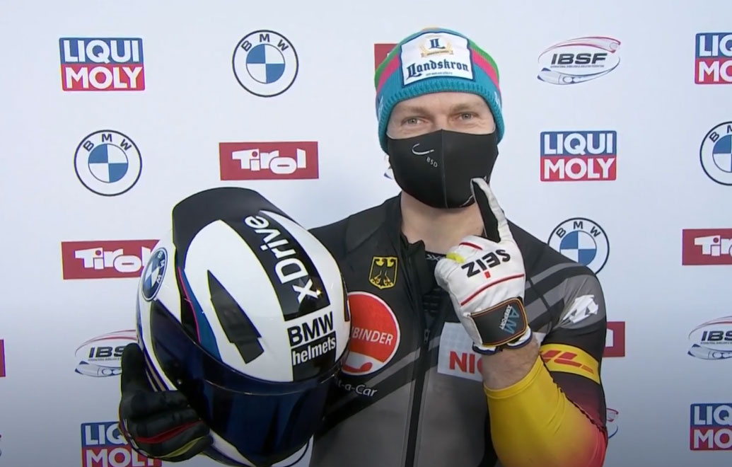 (Dec. 19, 2020) – Francesco Friedrich won his sixth race in seven tries to start the IBSF World Cup season, this time crushing his own track record on his way to a .68 victory over Oskars Kibermanis