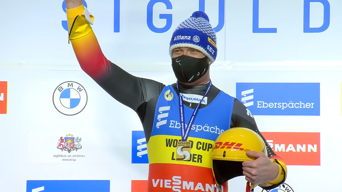 (Jan. 9, 2021) – Felix Loch won his eighth gold medal of the 2020/2021 World Cup season, cruising to victory in an otherwise close race in Sigulda.